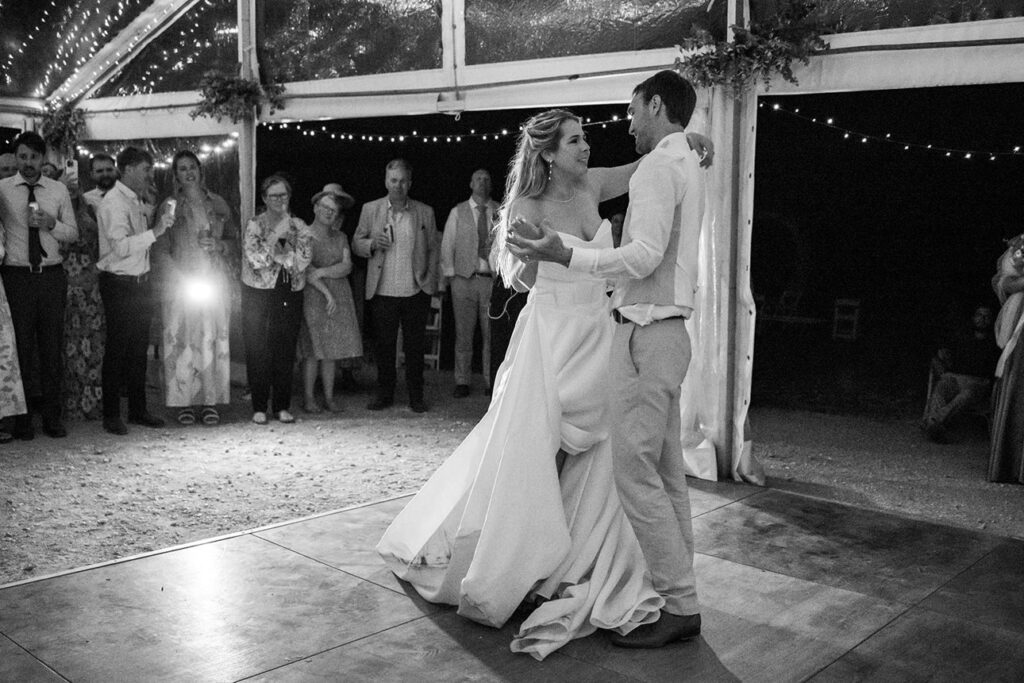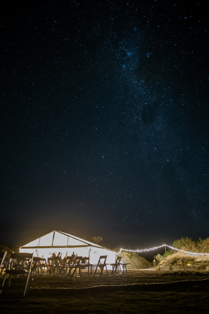 As the sun dipped, the marquee came alive with laughter, heartfelt speeches, and a first dance that carried well into the night. After a long day of celebrating, I was faced with a three-hour drive home, but decided to roll out my swag alongside the guests instead. That choice meant I was able to capture one of my favourite frames of the day: a star-filled sky above the celebration of love.