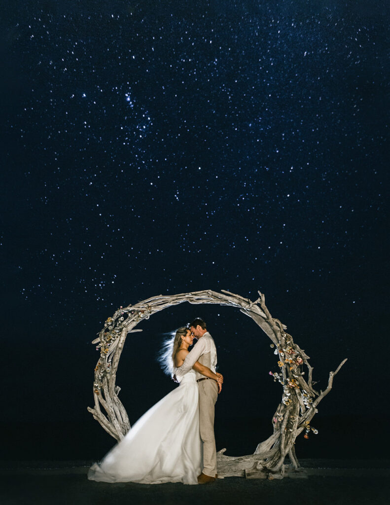 Megan and Rennick first crossed paths while studying marine science at university, and their love story has been deeply tied to the ocean ever since. With Megan’s research focusing on plastic pollution and both of them passionate about protecting the natural world, it was only fitting that their wedding reflected their values and love for the outdoors.