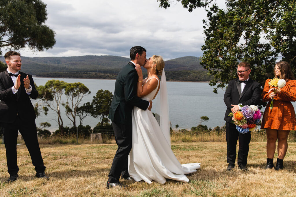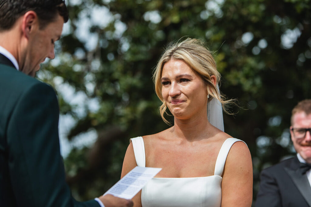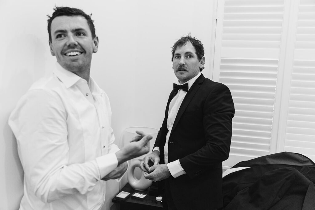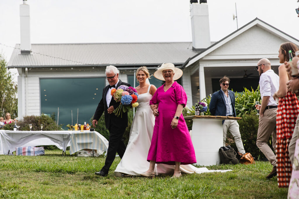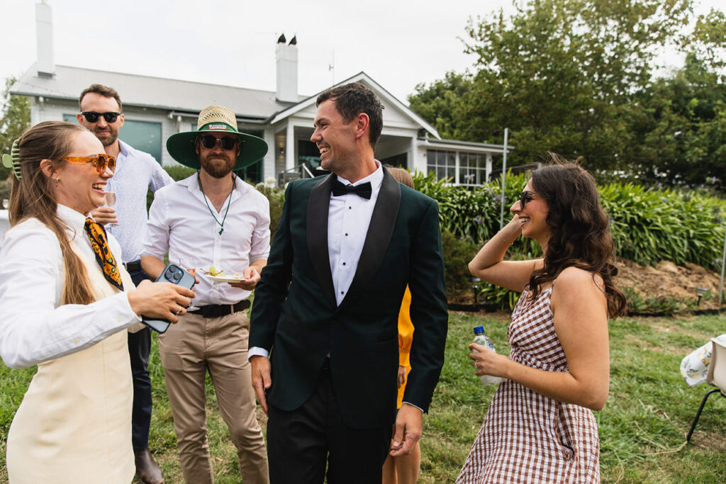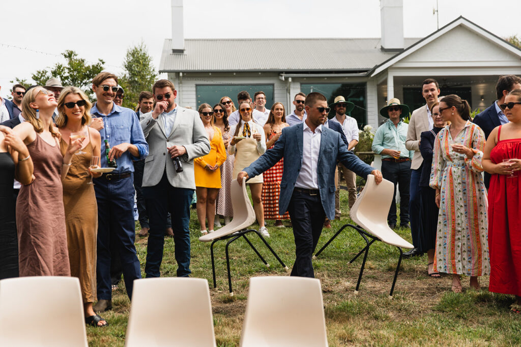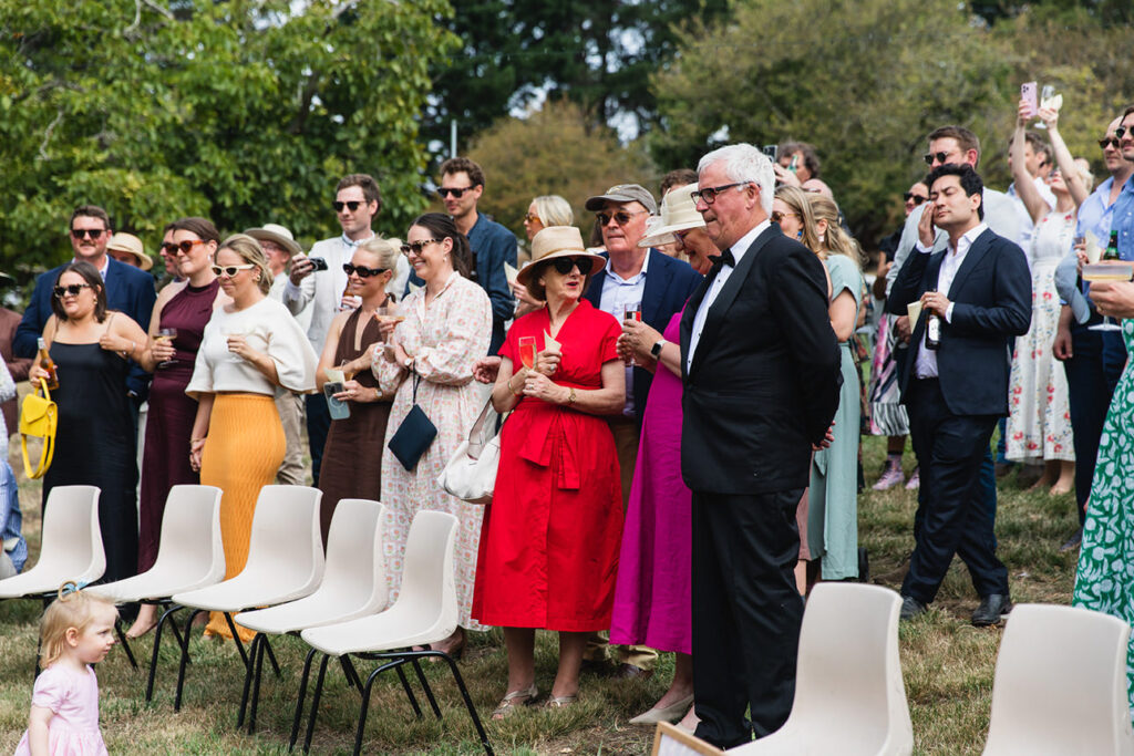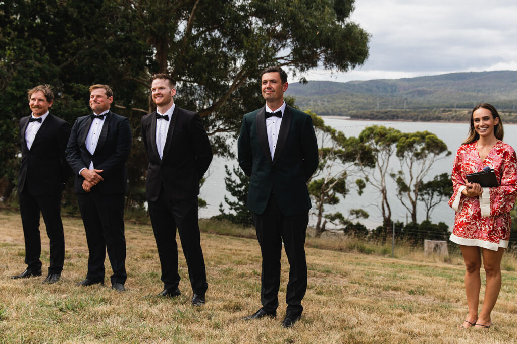 The only people who knew the plan were the bridal party (told just two days earlier!) and the celebrant, a close friend of the couple. When the moment arrived, Daniel and his groomsmen quietly slipped away from the crowd, heading inside to change into their suits. Meanwhile, Miranda waited outside, ready to walk down the aisle.