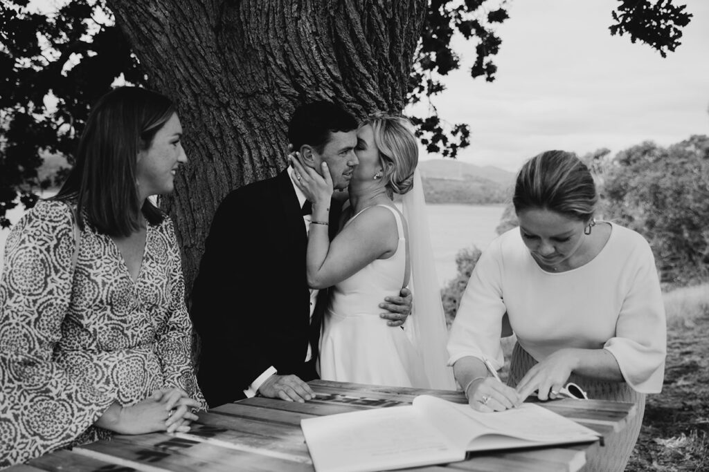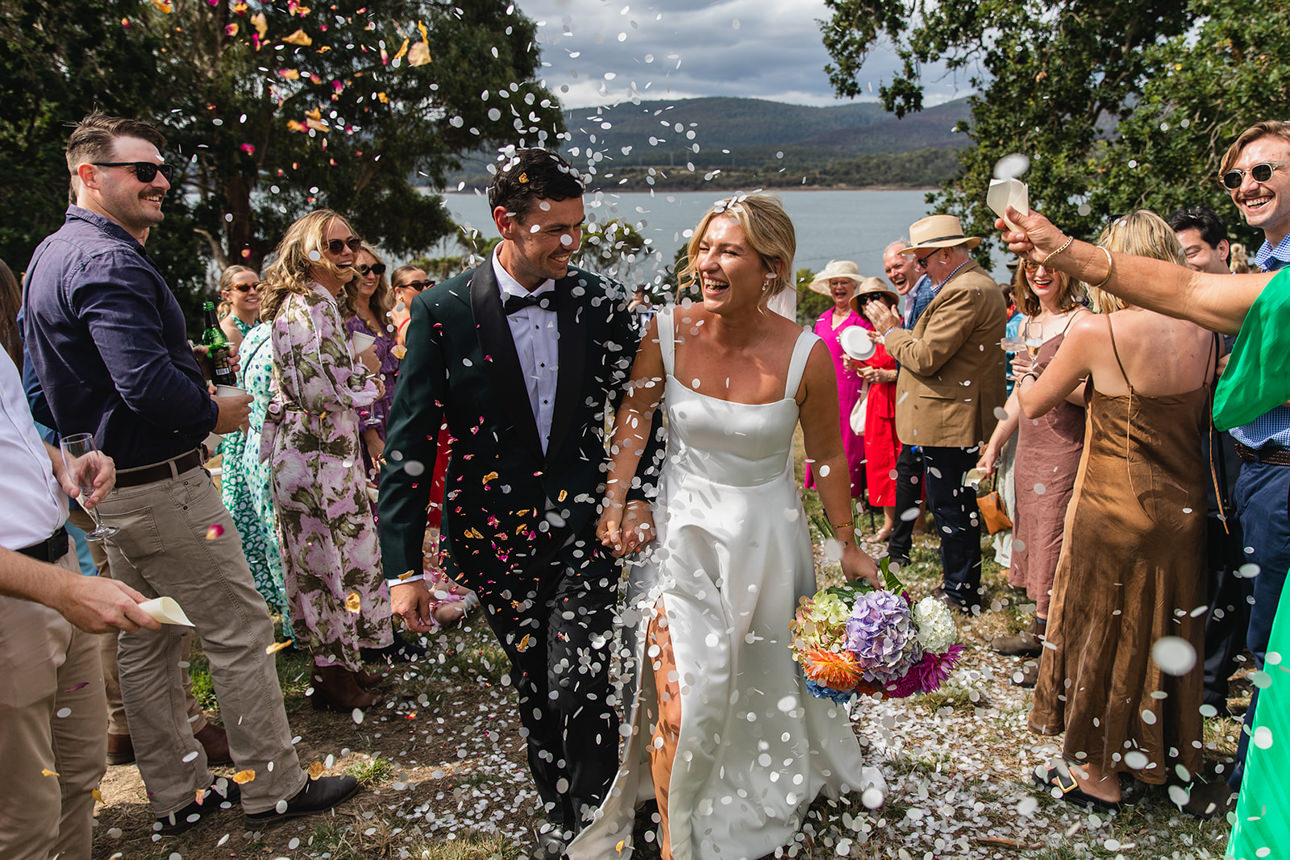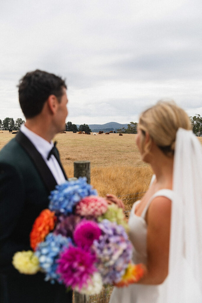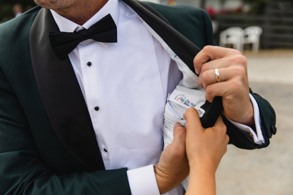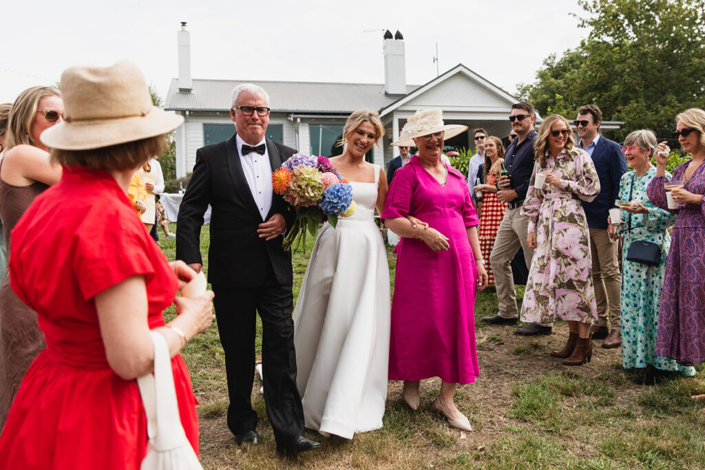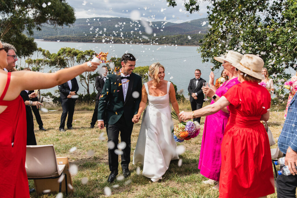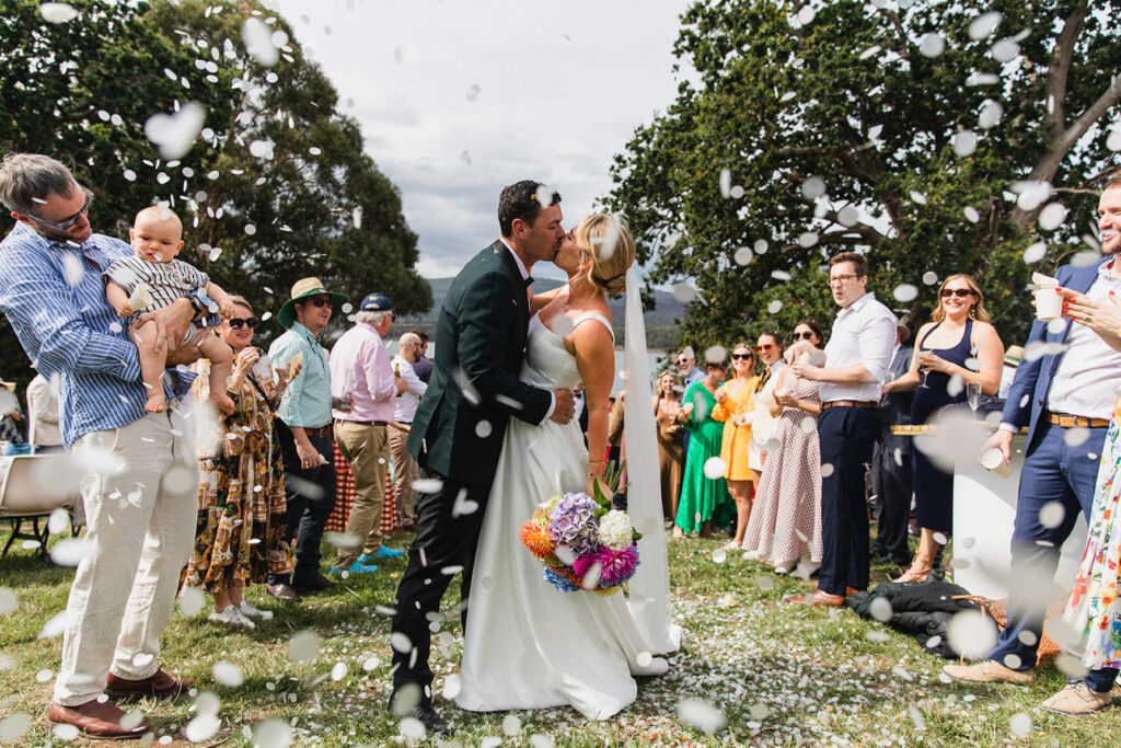 The only people who knew the plan were the bridal party (told just two days earlier!) and the celebrant, a close friend of the couple. When the moment arrived, Daniel and his groomsmen quietly slipped away from the crowd, heading inside to change into their suits. Meanwhile, Miranda waited outside, ready to walk down the aisle.